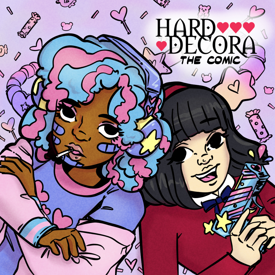 I read kind of a good amount of comics??? I wouldn’t call myself an otaku or anything but I try to keep up with a variety of comics from manga, to indie, to things my art friends make. When I think about Hard Decora though most of my inspirations come from comics I read in high school or college. I take in inspiration constantly but for the concept of Hard Decora the comic, I’d say the following 4 comics influenced me heavily.
